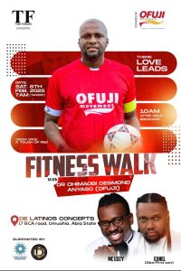 The fitness walk with the theme,”Love Leads”, will commence from De Latinos Concepts and cover key routes within the Umuahia metropolis, bringing together fitness enthusiasts, community leaders, and the general public. Participants will have the opportunity to engage in light exercises, interactive sessions, and discussions on the importance of regular physical activity.