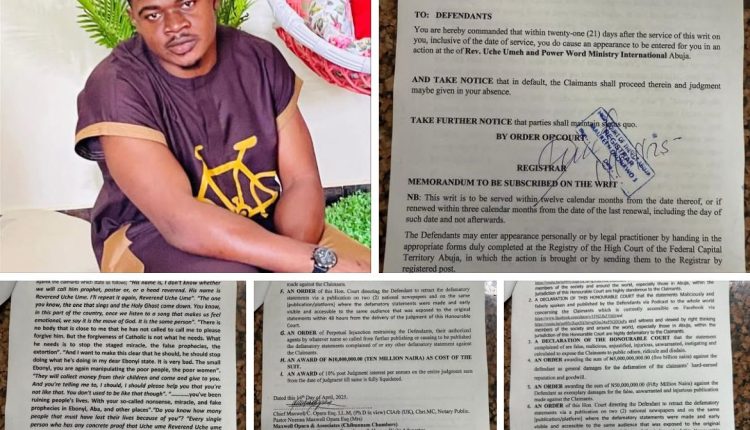 The suit, instituted by Barr. Maxwell Okpara of Chibunnam Chambers, counsel to Rev. Uche Ume, contends that the defamatory statements published on Facebook, TikTok, Instagram, and YouTube were malicious and intended to injure the reputation of the Claimants.