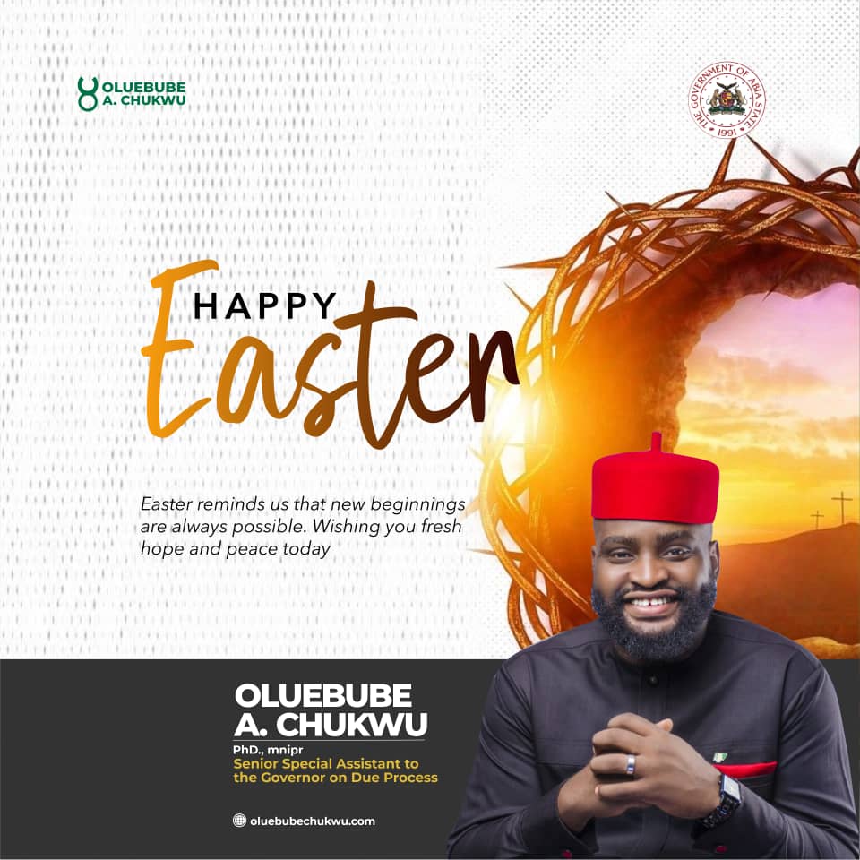 The Senior Special Assistant to the Abia State Governor on Due Process, Dr Oluebube Chukwu, has sent a heartfelt message to Abians as Christians all over the world commemorate the Easter celebration.