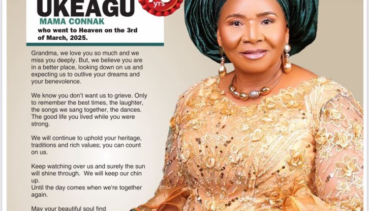Today, 7th June 2025, we lay to rest a remarkable woman, Late Elder Mrs. Chinyere Margaret Ukeagu, fondly known as Mama CONNAK.